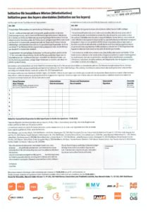 Die Mietinitiative fordert beim künftigen privaten Wohnungsbau einen Mindestanteil von einem Drittel an preisgünstigen Wohnungen. Für mindestens diesen Anteil soll das Prinzip der Kostenmiete gelten, ganz unabhängig davon, ob die Bauherren der Privatwirtschaft zugehören oder ob der erwähnte Mindestanteil einer gemeinnützigen Bauherrschaft übertragen wird.